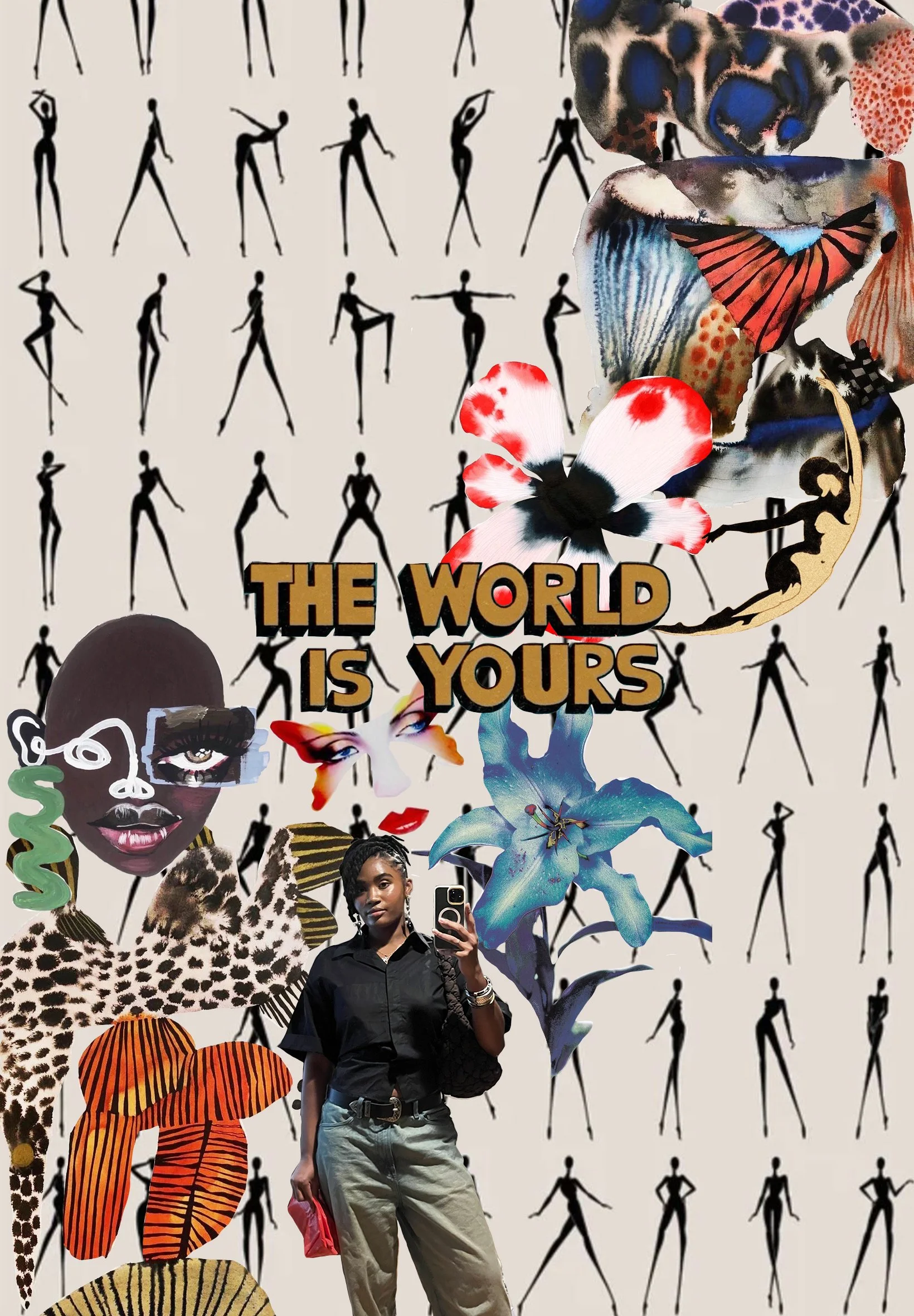 THE WORLD IS YOURS"This collage is a personal creative project using found imagery for non-commercial use. All image rights belong to their respective owners." Slide 1 Slide 1 (current slide)